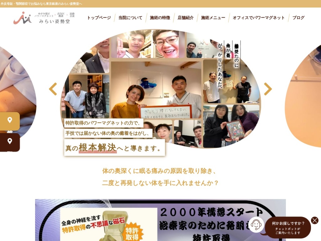 みらい姿勢堂 銀座本店 | 50,000円〜 | 30,000円〜 | 85% | 高(健康改善効果含む) |